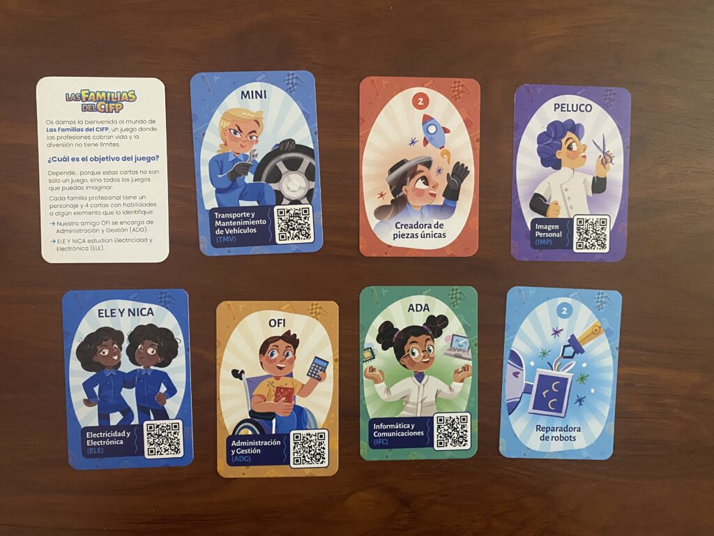 El CIFP de Avilés ha resultado ganador del concurso Dualiza-Orienta 2024-2025 convocado por CaixaBank Dualiza y FP Empresa con un juego de cartas. «Las Familias del CIFP», así se llama el proyecto, tiene como objetivo orientación, de forma lúdica, a alumnado de infantil y primaria hacia la Formación Profesional mostrando a través del juego típico de cartas de familias las diferentes familias profesionales que se imparten en el centro. Este juego será mostrado a los diferentes colegios que nos visitarán a lo largo del curso para conocer nuestro centro.